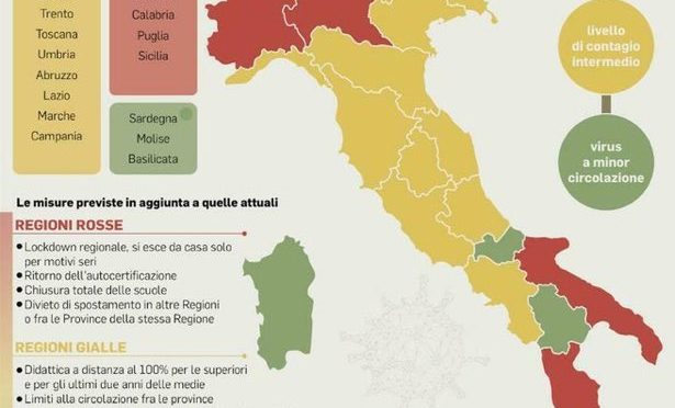 Zona rossa zona arancione zona gialla covid 19.